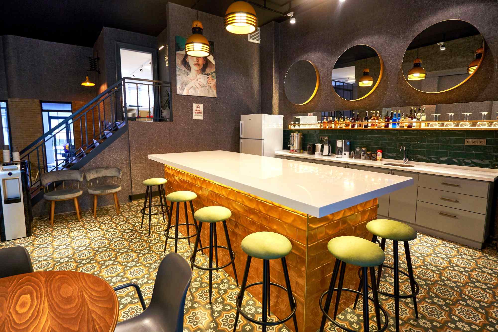 Dinlenme ve sosyal alanlar, sadece bir mola yeri değil, aynı zamanda ilham toplama noktanız olacak. Bar taburelerinden ergonomik kahve masalarına kadar her detay projeleriniz için bir adım daha öteye gitmenize yardımcı olacak şekilde tasarlandı. Celebrity çekimleri için özel hazırlanan sanatçı odamızda ise saç yıkama ünitesinden duş alanına kadar her şey, en ince detayına kadar düşünülmüş durumda.